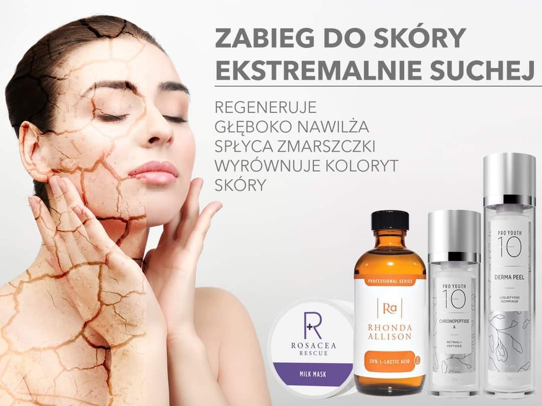 Skóra po zabiegu z widocznymi mikrouszkodzeniami i strupkami.